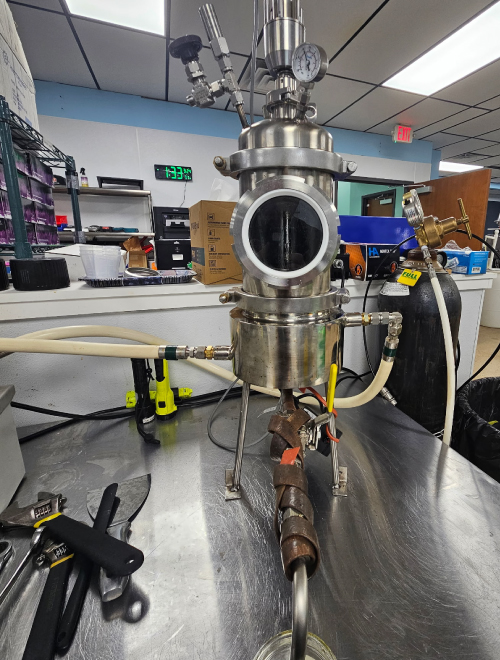 The minion reactor uses a nitrogen re-flow system that keeps the atmosphere inside the minion reactor at the perfect pressure for a controlled decarb that saves all your terpenes while preventing any oxidation of the solution to occur.